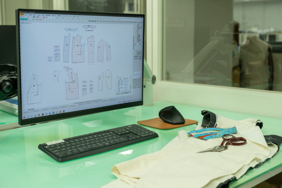 企画者の制作したデザイン画をもとに、洋服の土台になる型紙(パターン)をつくる仕事です。企画意図を正確に汲み取り、生地の裁断方法からどのように縫製するかまでをイメージして、パターンを作成します。実際の商品になった際のシルエットや着心地を左右する、重要な仕事です。